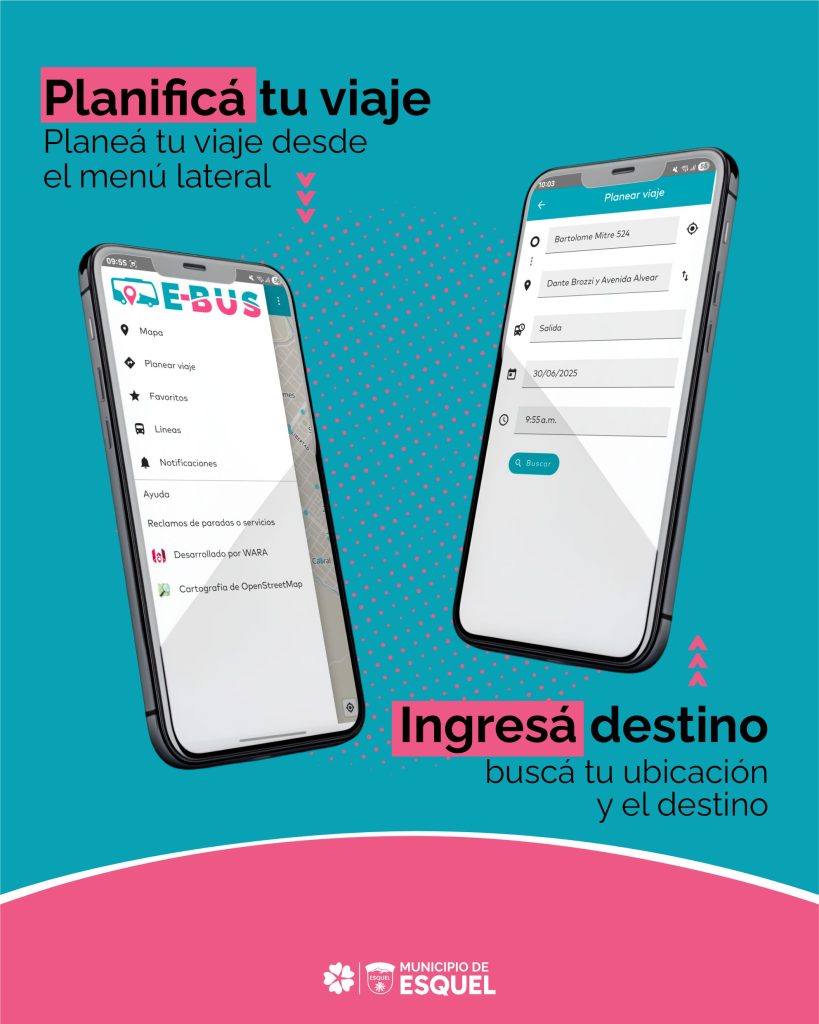 Con E-Bus, los vecinos podrán consultar líneas, horarios, paradas y planificar sus trayectos de manera sencilla y confiable, accediendo a información actualizada y precisa. Esta iniciativa representa un avance clave hacia un sistema de transporte más eficiente, ordenado y accesible, pensado para responder a las necesidades reales de quienes se mueven día a día por Esquel.