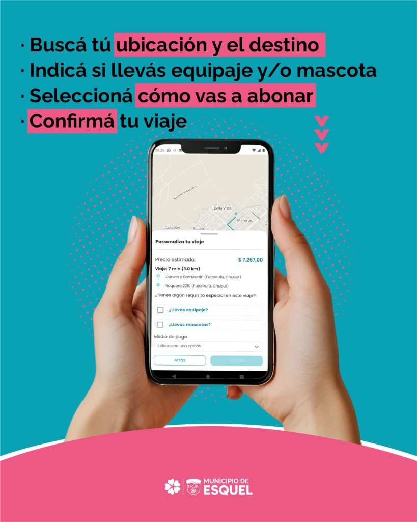 Es una aplicación de transporte que permite conectar de manera inmediata y eficiente a pasajeros con taxis registrados en la ciudad de Esquel.