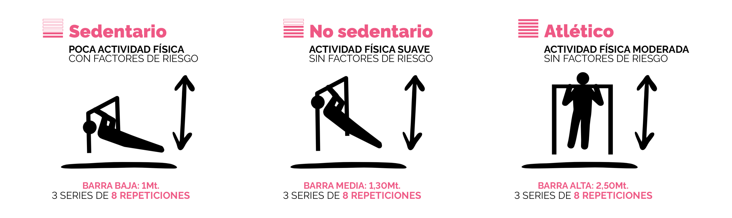 Ejercicio: Tracción en barra media (1,30 m de altura)